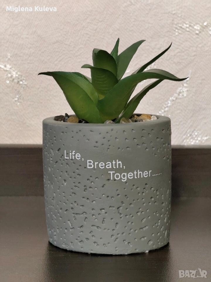 Мини саксийка от гипс с изкуствено цвете → Обява 54011909