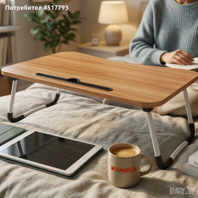 Мултифункционална сгъваема маса за лаптоп или хранене, с поставка за таблет и телефон → Обява 54012127