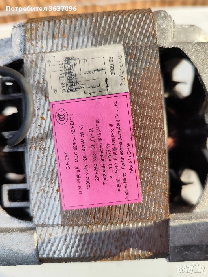мотор за пералня марка C.E.SET, модел MCC 52/64-148/SEC11. В отлично състояние.