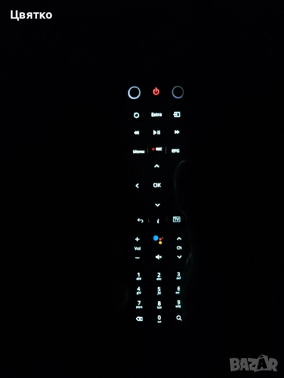 - Универсално дистанционно управление с bluetooth и посветка на бутоните му, което с подходящ код може да използвате и за вашата марка телевизор.