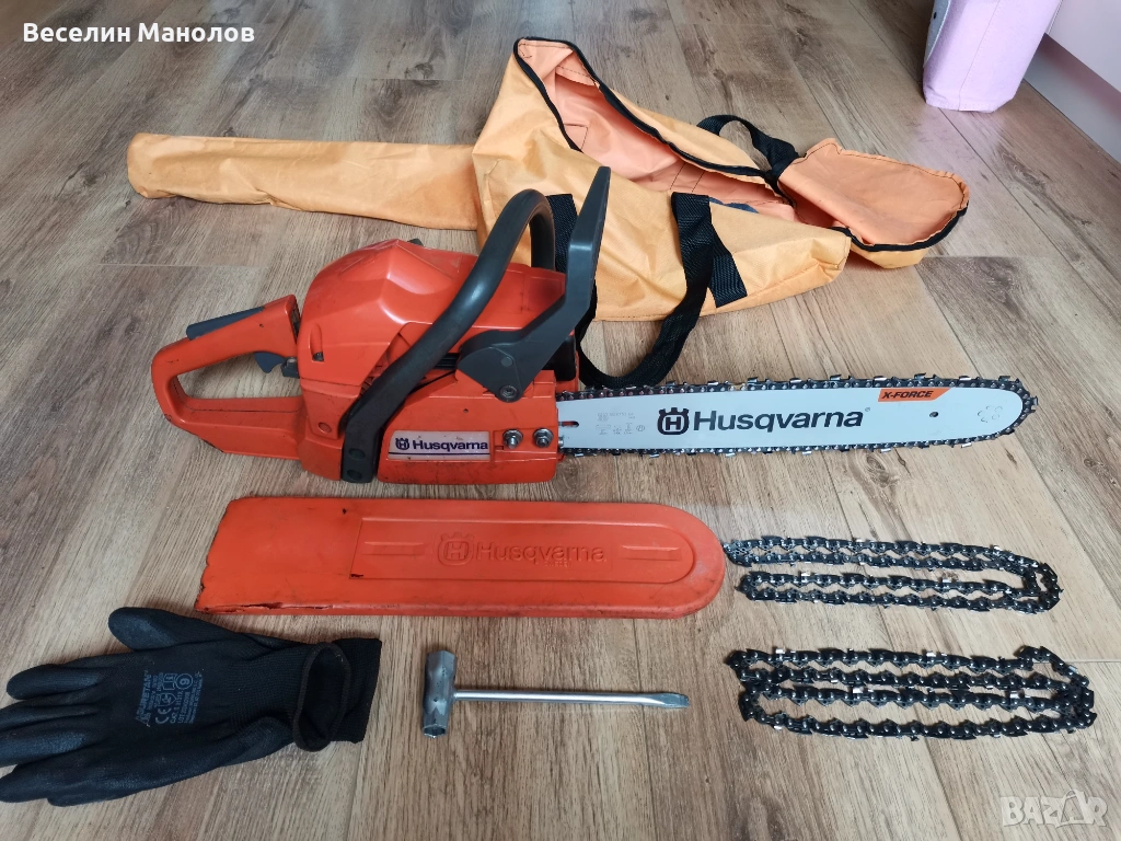 Използвана бензинова верижна резачка Husqvarna модел 137е. Подходяща за домашна употреба и малки дърводелски работи.Преди 1г. са сменени:Шина/38см/,верига,запалителна свещ и въздушен филтър с оригинални.Продава се така както се вижда на снимките.Допълнителната верига е чисто нова /Хускварна Н36 056Е/