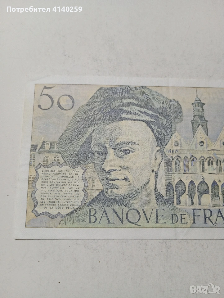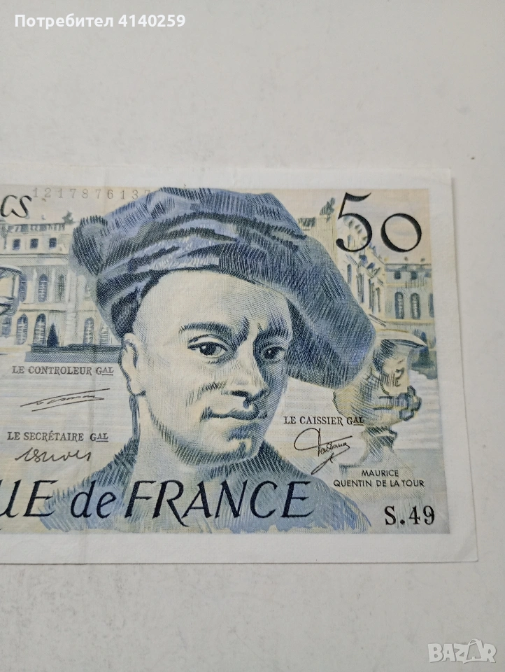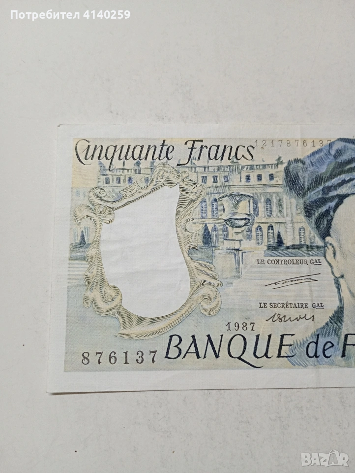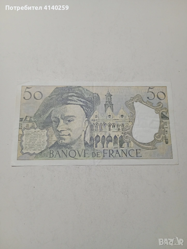 ФРАНЦИЯ БАНКНОТА 50 ФРАНКА 1987 Г СЪСТОЯНИЕ ВИДИМО ПОЛУЧАВАТЕ СНИМАНАТА БАНКНОТА РАЗГЛЕДАЙТЕ ДРУГИТЕ МИ ОБЯВИ ДА КОМБИНИРАТЕ ДОСТАВКА ЕКОНТ ЗА ВАРНА ЛИЧНО