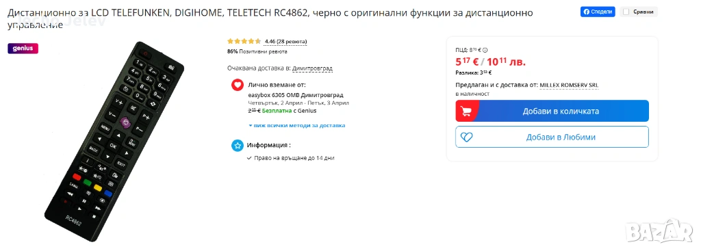 снимката на дистанционното е от емаг с реална цена от 29.03.2026г