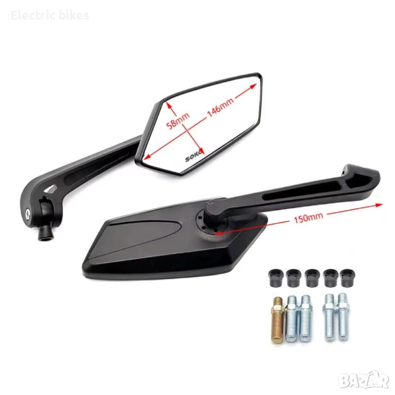 Практични и здрави огледала за кормило, осигуряващи отлична видимост назад при каране. Подходящи за електрически велосипеди, планински и градски модели.