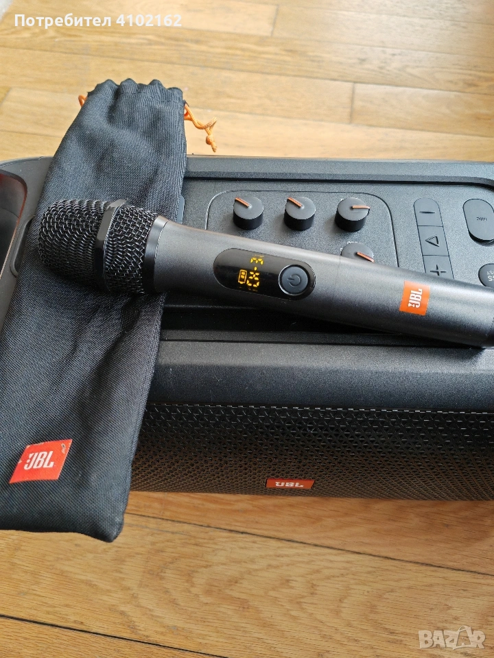 Колоната е в добро състояние, има лека забележка на кожата отзад. Свири безупречно, микрофона е с оригинален калъф.