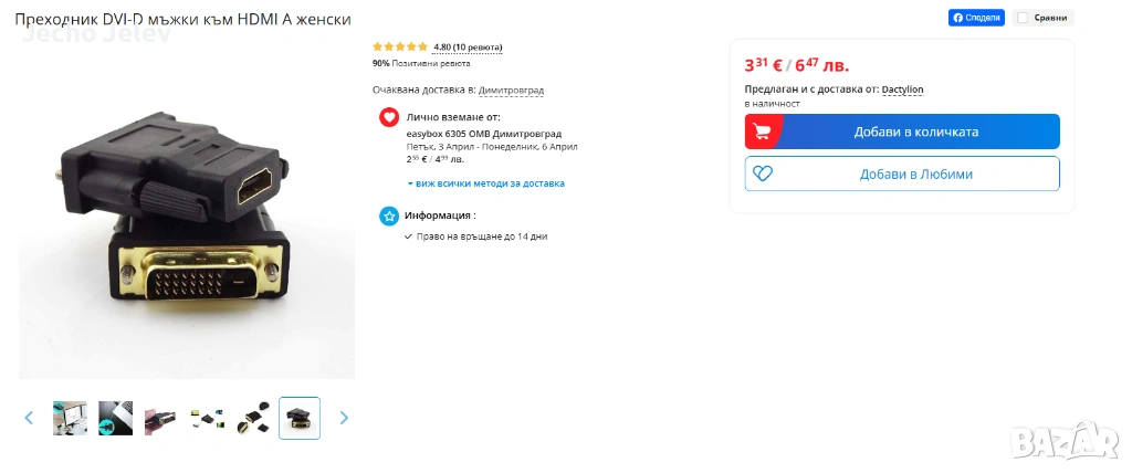 Ако ви е необходим HDMI, могат да се използват преходници – те са сравнително евтини. В момента разполагам с 1 брой, а при желание може да си поръчате и от eMAG или други магазини, тъй като се продават навсякъде.