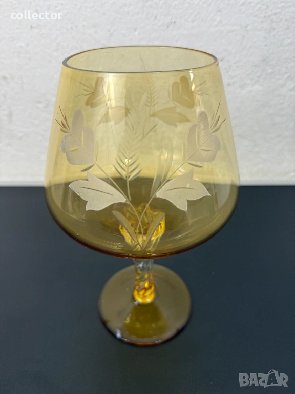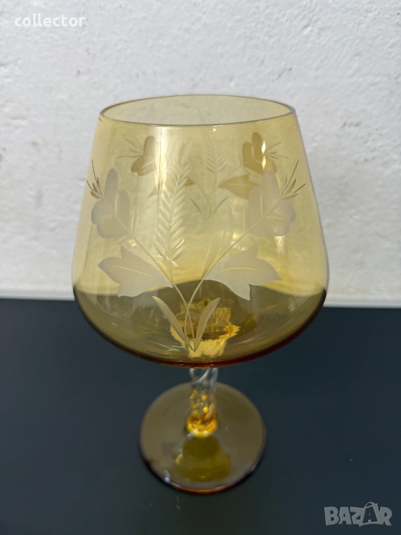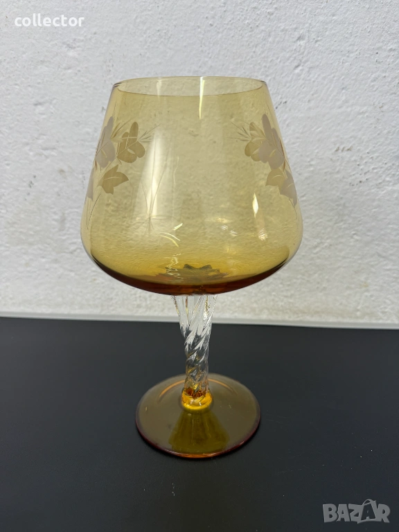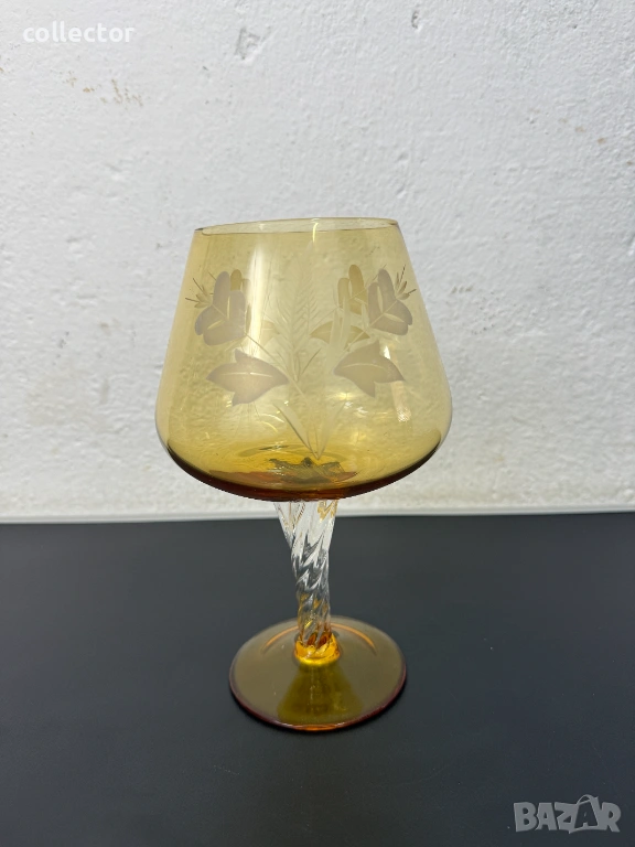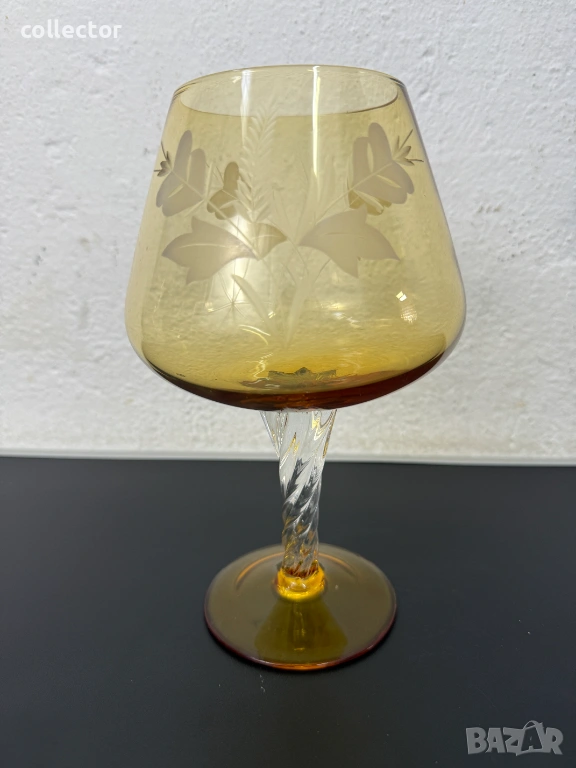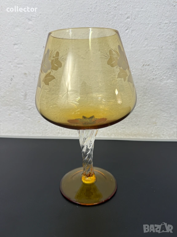 Използвана е техниката на гравиран кристал, при която външният цветен слой е внимателно изрязан, за да разкрие прозрачната основа под него. Добро запазено състояние.