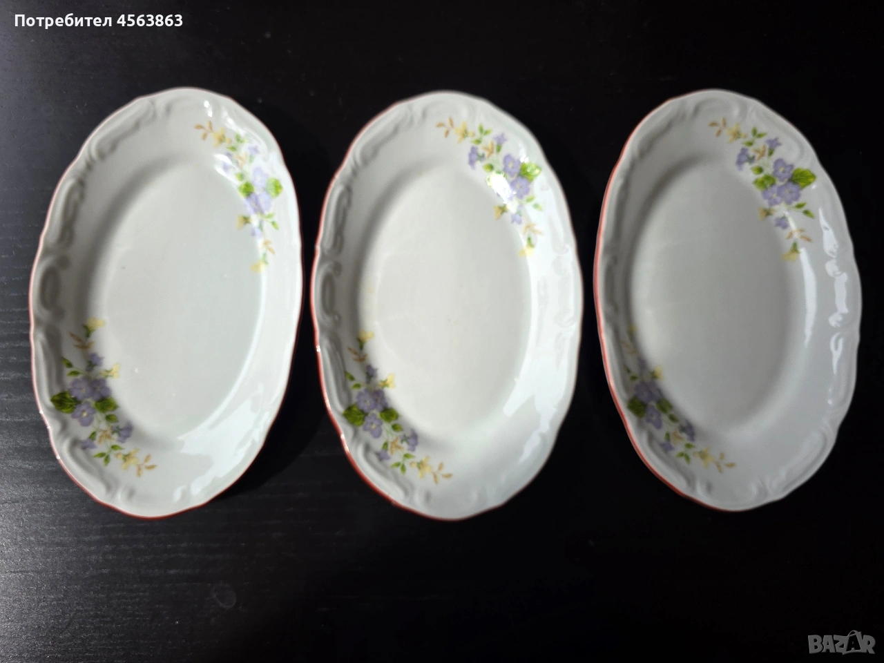 3 елипси с червеникав кант и някои нормални за българско производство хабрични забележки. здрави, с размер 22,5 см х 14см