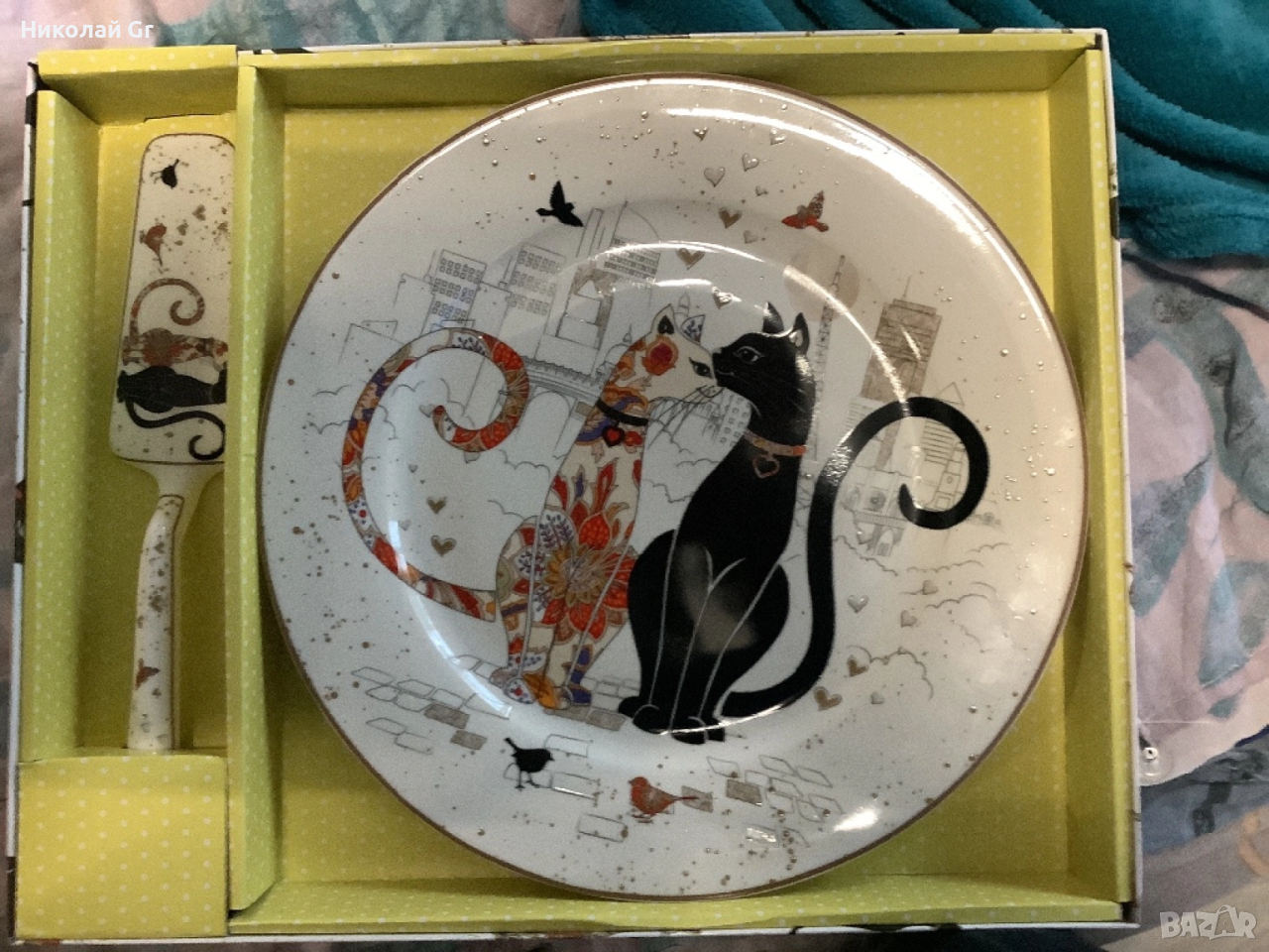 Порцеланова чиния и шпатула Не се използва в подаръчна кутия чиния диаметър 29 см → Обява 54013193