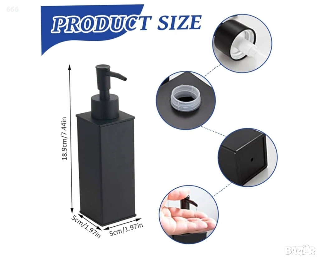 Дозатор за сапун, 100 мл, снимка 1 - Други стоки за дома - 54013208 Дозатор за сапун, 100 мл, снимка 2 - Други стоки за дома - 54013208 Дозатор за сапун, 100 мл, снимка 3 - Други стоки за дома - 54013208 Дозатор за сапун, 100 мл, снимка 4 - Други стоки за дома - 54013208 1/4