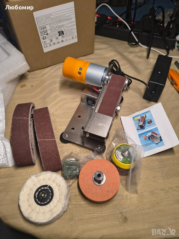 Хоризонтална лентова шлайфмашина, електрическа мини лентова, шлайфмашина, многофункционална