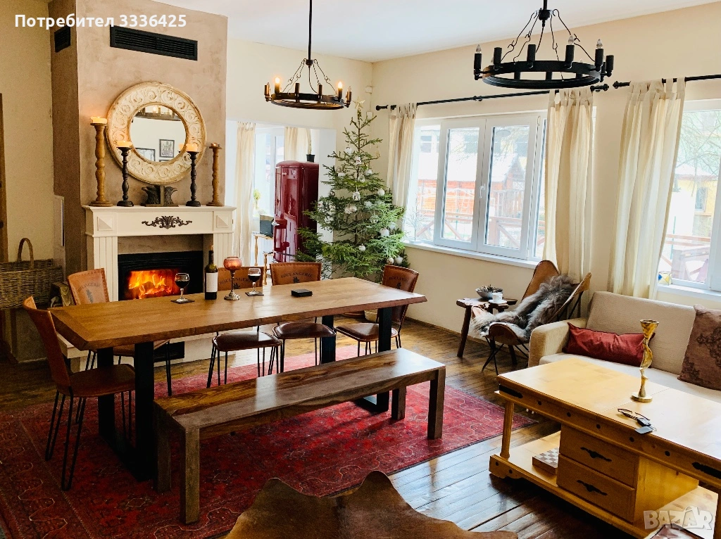 Интериора е правен по индивидуален проект - стил индустриален рустик/ алпин шалет. Мебелите са дизайнерски поръчвани и всичко подбрано отговаряйки на стила и визията на вилата. Подходяща и готова както за живеене, така и за краткосрочно отдаване под наем с цел бизнес. Продава се с всичко в нея, така както е.
