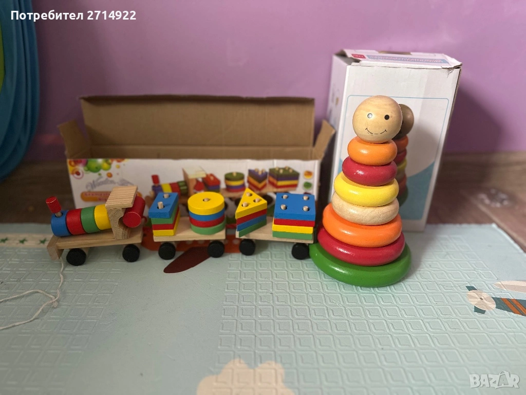 Продавам лот дървени играчки- дървено влакче и дървен сортер- 5 евро за двете