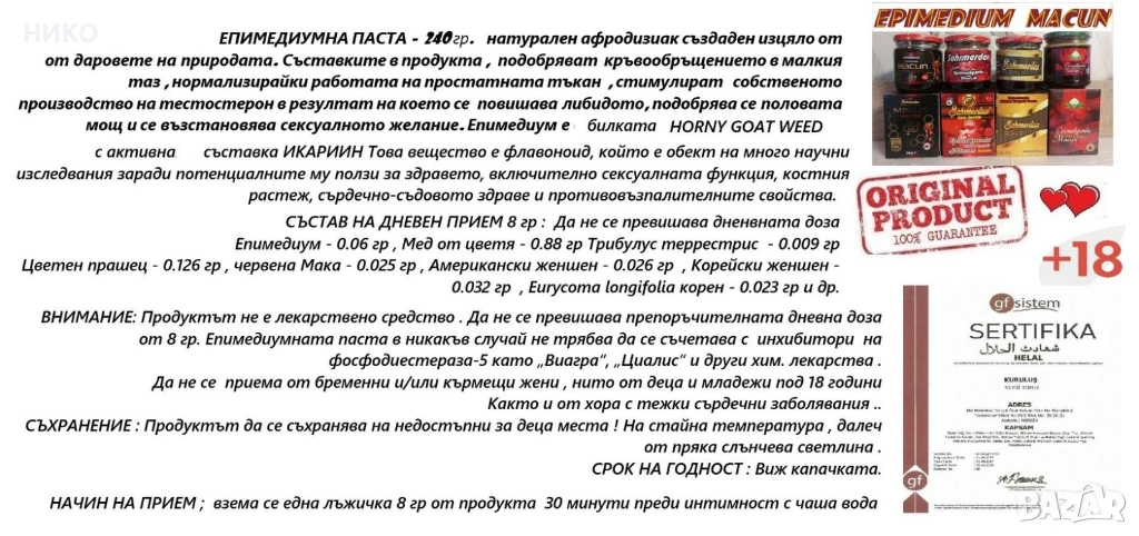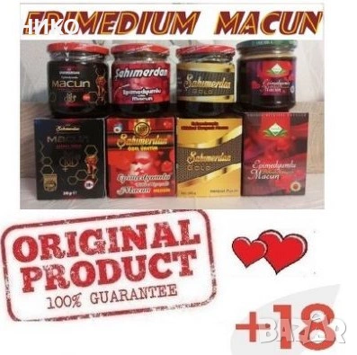 КАК ДА ПРИГОТВИТЕ СМЕСТА : Вземете един по голям стъклен буркан с капачка , почистете го добре от прах и влага. Смесете съдържанието на всичките бурканчета вътре . Всеки път , преди да вземете една чаена лъжица разбърквайте добре . Ще останете приятно изненадани от силния , продължителен и "брутален" ефект на сместа от 4те вида Епимедиум Маджун . Kогато се смесят , билките действат синергично , тоест полученият ефект е много по силен от ефекта на всяко бурканче поотделно. Дори и да не правите секс редовно , вземайте по една чаена лъжичка през два -три дни сутрин последвано от чаша вода . По този начин ще имате желание и готовност за интимност по всяко време . Ще можете да задоволите дори и най взискателната жена . Ще придобиете страхотно самочуствие , ще бъдете номер едно . По възрастните момчета , отново ще почувстват удоволствието от секса . А младежите ще се превърнат в шампиони. Ще усетите действието на сместа и по сутрешните ерекции , които получавате . Те са много важен показател за мъжкото здраве и за нормални нива на тестостерон в тялото ви . Ще усетите също така и подобряване на настроението , самочуствието и енергията . Ще се почуствате с поне 20 години по млади.