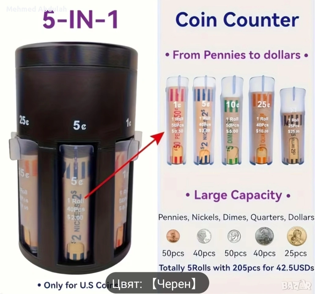 Ръчен 5 в 1 сортиращ брояч на евромонети → Обява 54013851