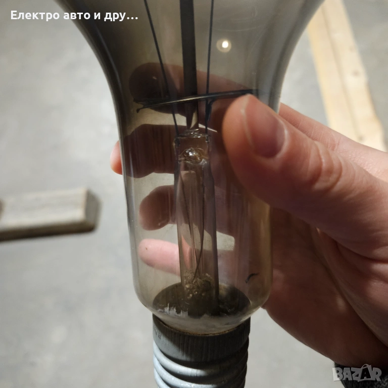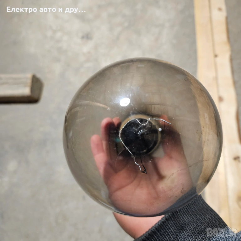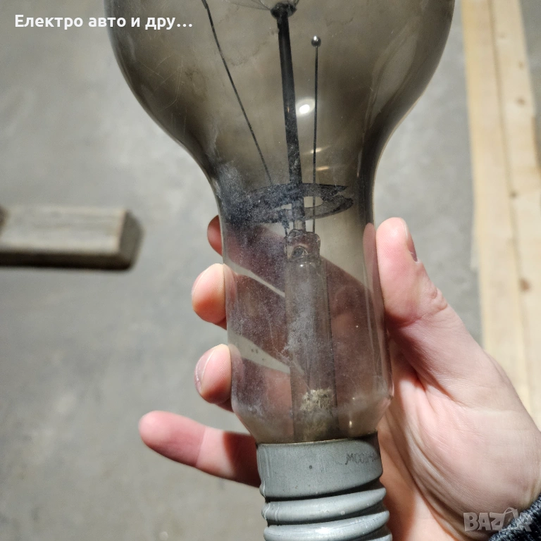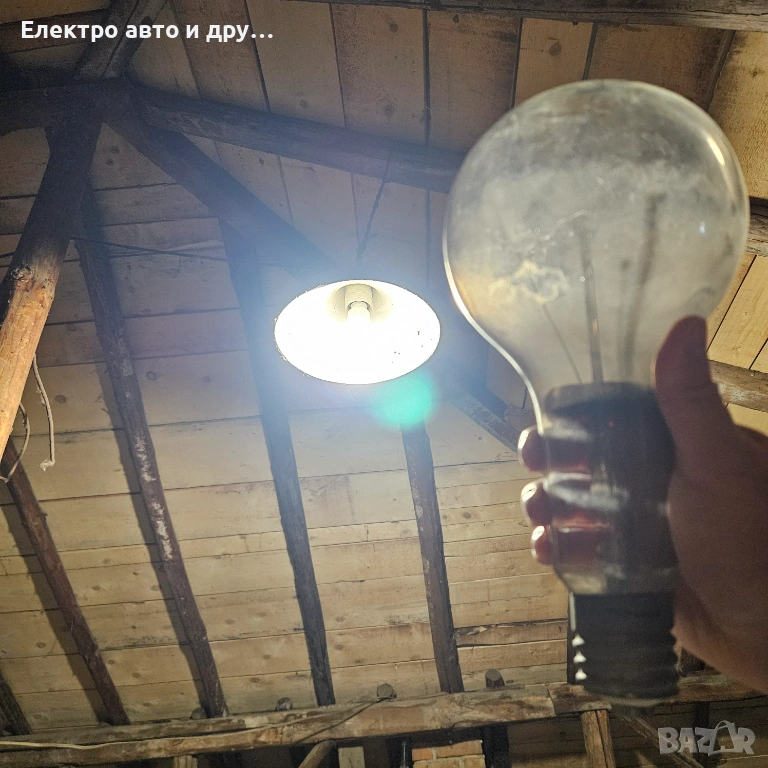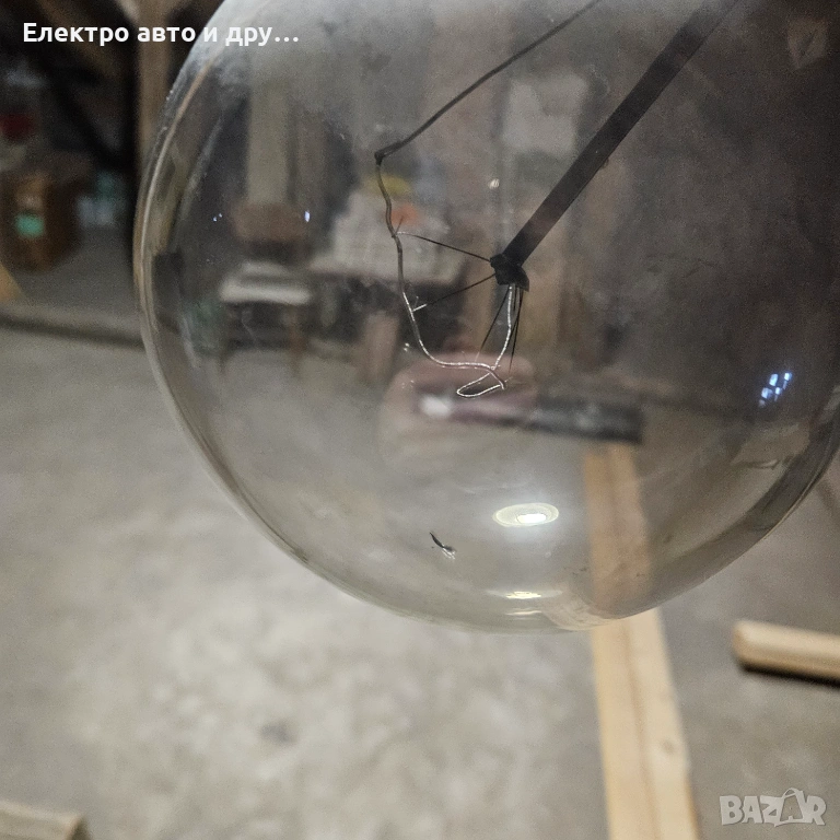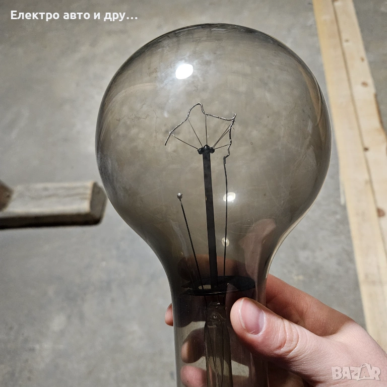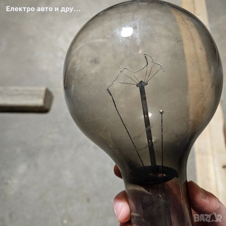 Стара голяма крушка 240V-500W . Крушката работеше до преди няколко седмици на таванска лампа, но изгоря. Знам че едно време прабаба ми едновременно е осветявала и топлила кокошките в курника с тази крушка. Със сигурност е над 50 годишна, може и 100, не знам точно кога е произведена. Стъклото е здраво, но нажежаемате жичка вътре е прекъсната. Запазих е и е продавам, защото предполагам че може да има стойност като антиквариат.