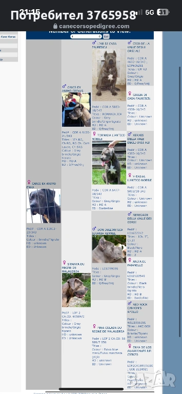 Кане корсо с родословие