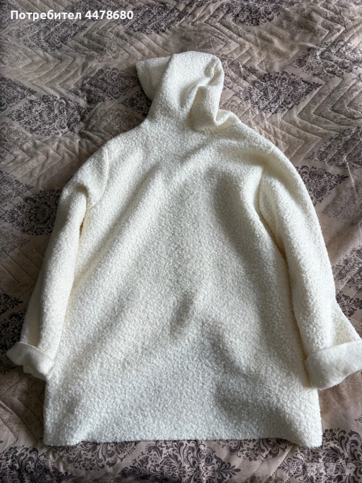Бяло палто/жилетка с качулка, снимка 1 - Жилетки - 54013999 Бяло палто/жилетка с качулка, снимка 2 - Жилетки - 54013999 1/2