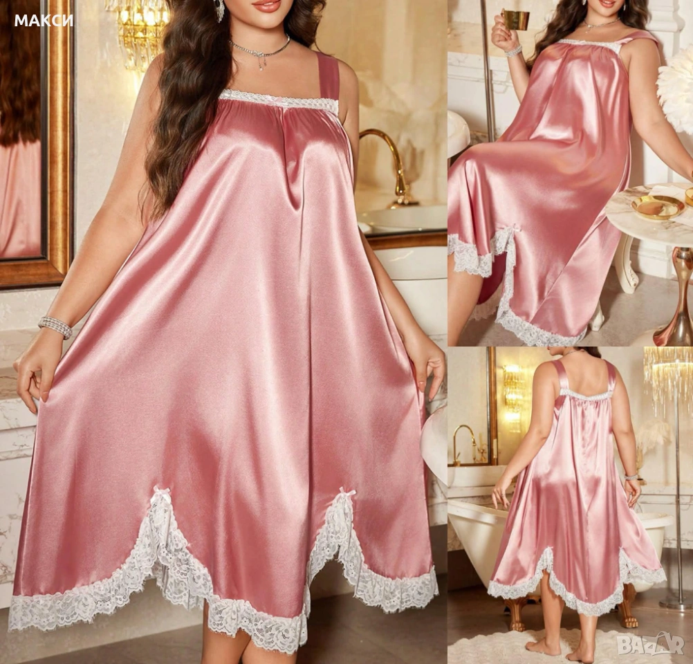 Макси разкошна дълга сатенена нощница с красива бяла дантела в коралово розово → Обява 54014085