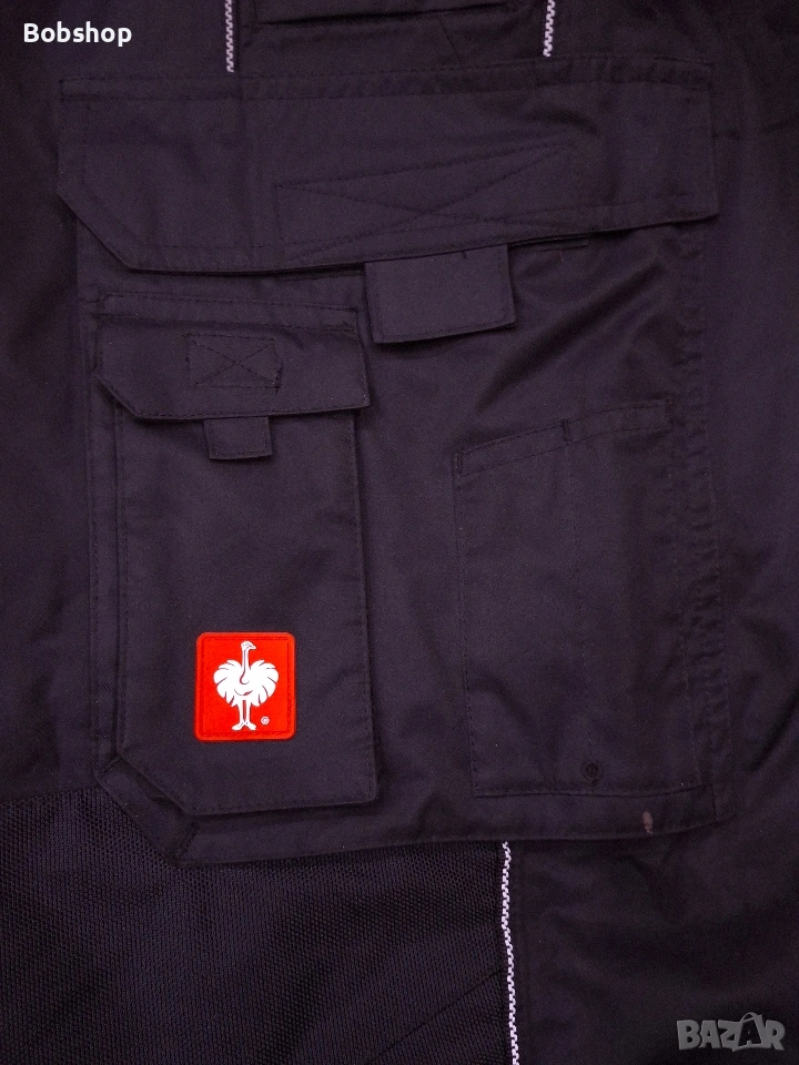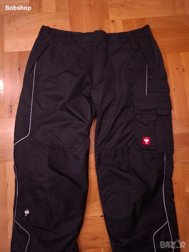 Ветроустойчива, водоустойчива и дишаща благодарение на мембраната dryplexx®, изцало подлепени шевове, ергономично оформена, подсилена зона на коляното, един дълбок страничен джоб на левия крак, отделения за химикалки и малък джоб с капак, примка за чук отляво, малък джоб за инструмент на десният крак, два задни джоба с капак и велкролепенка,