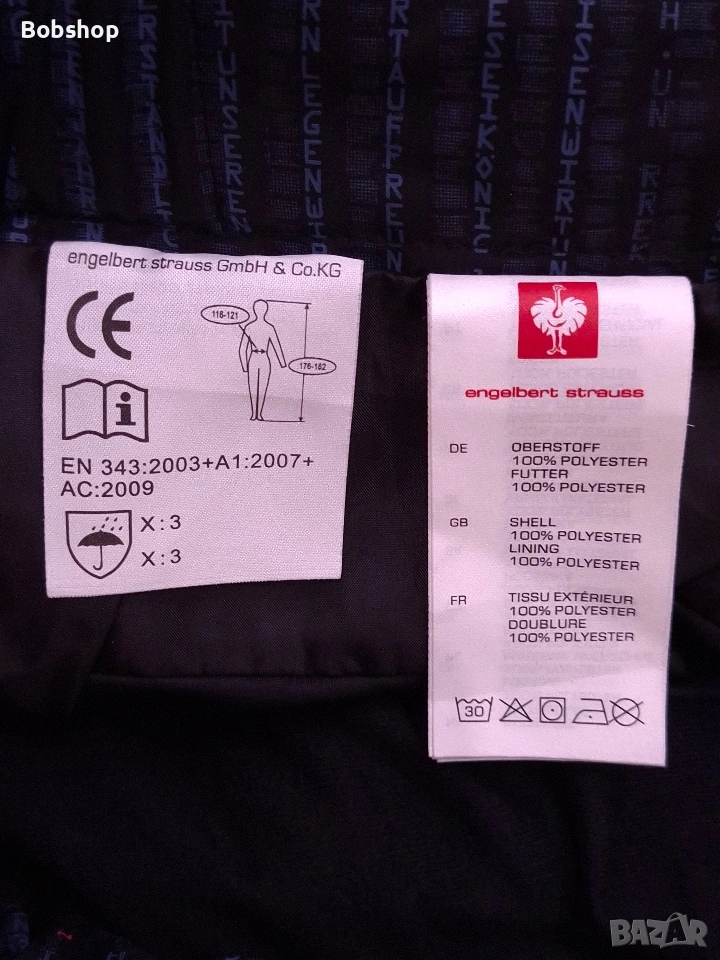 Отлично състояние, оригинален продукт, размер ро етикет - 62, материя външна част 100% полиестер, подплата 100% полиестер, два основни джоба с ципове, ластик на кръста,в закопчаване с тик-так копче и цип, светлоотразителни ленти.