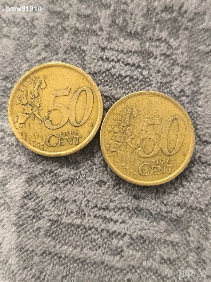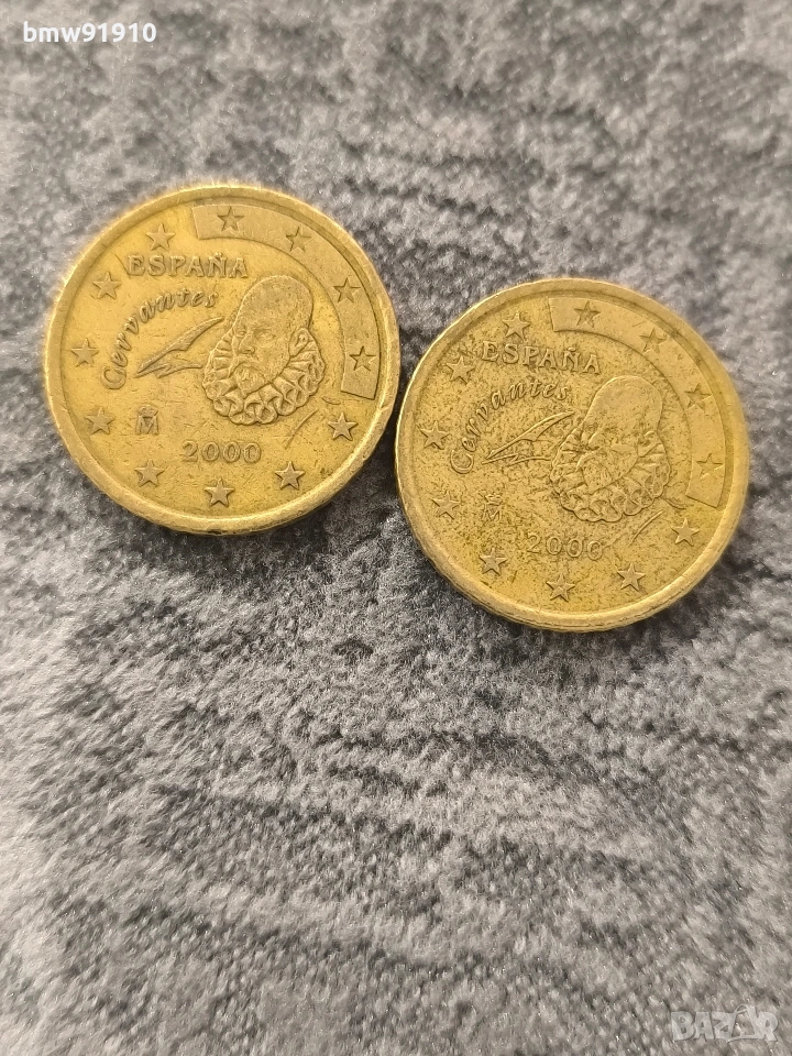 2 бр испански монети 50 евроцента 2000г. по 5 евро на бройка.