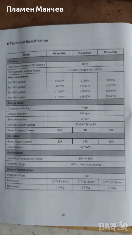 Още опипвам нещата , нямам много опит със соларите. Привлече ме високто входящо напрежение 100 V, но изпуснах подробността, че моите два панела са по 240 W = 480 W, а контролера поддържа до 360 W. Не съм рискувал да го свързвам за да видя какво ще стане, просто реших да го продам на цената, на която го закупих (21,60 евро).