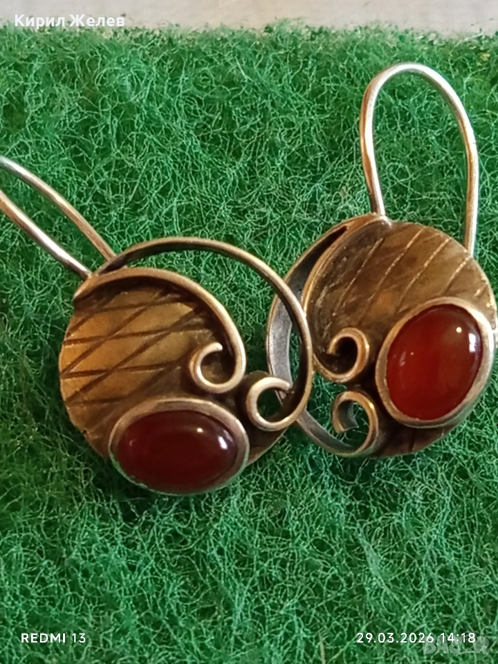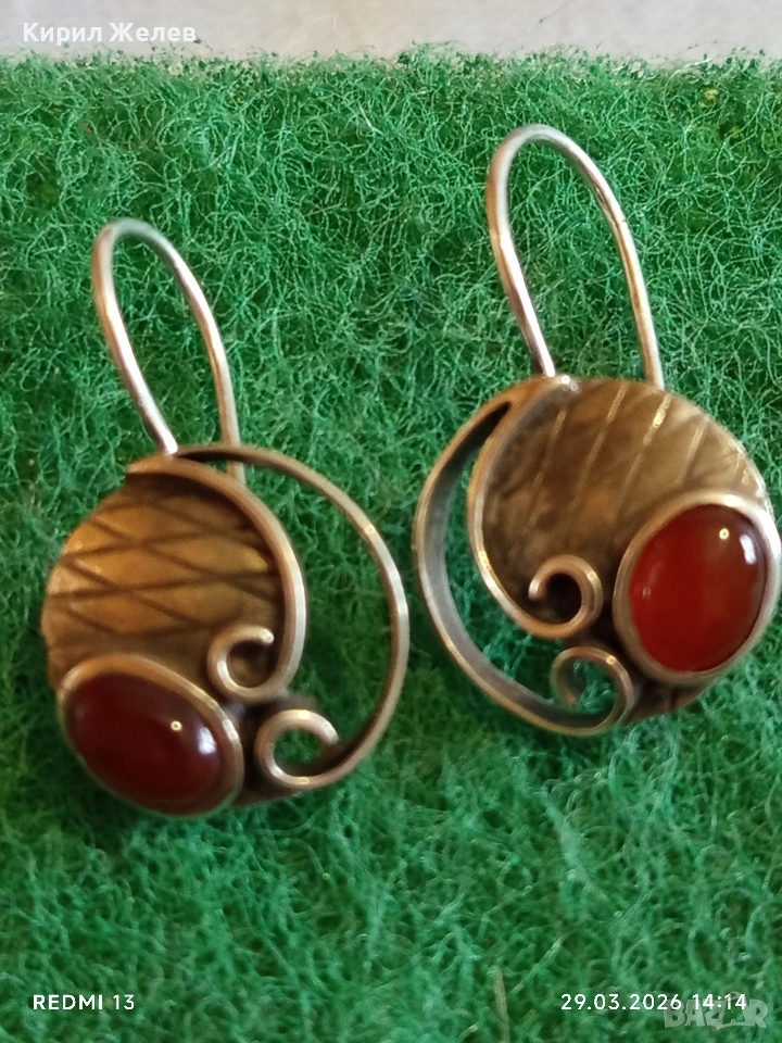 Бохемски стил Артистични сребърни обеци с червен КЕХЛИБАР 54190