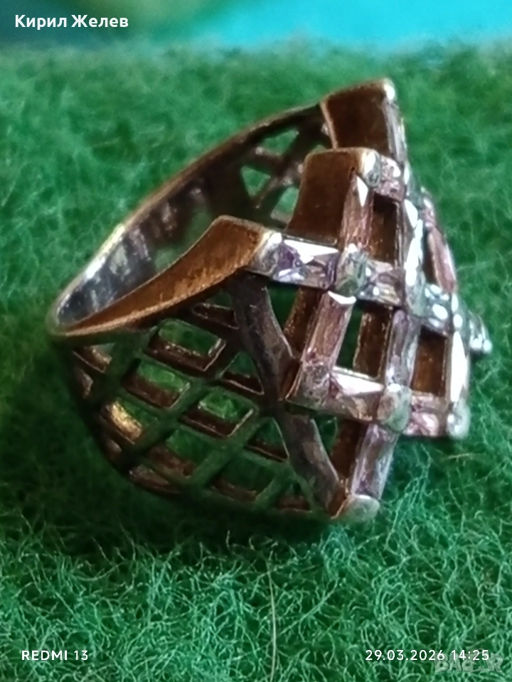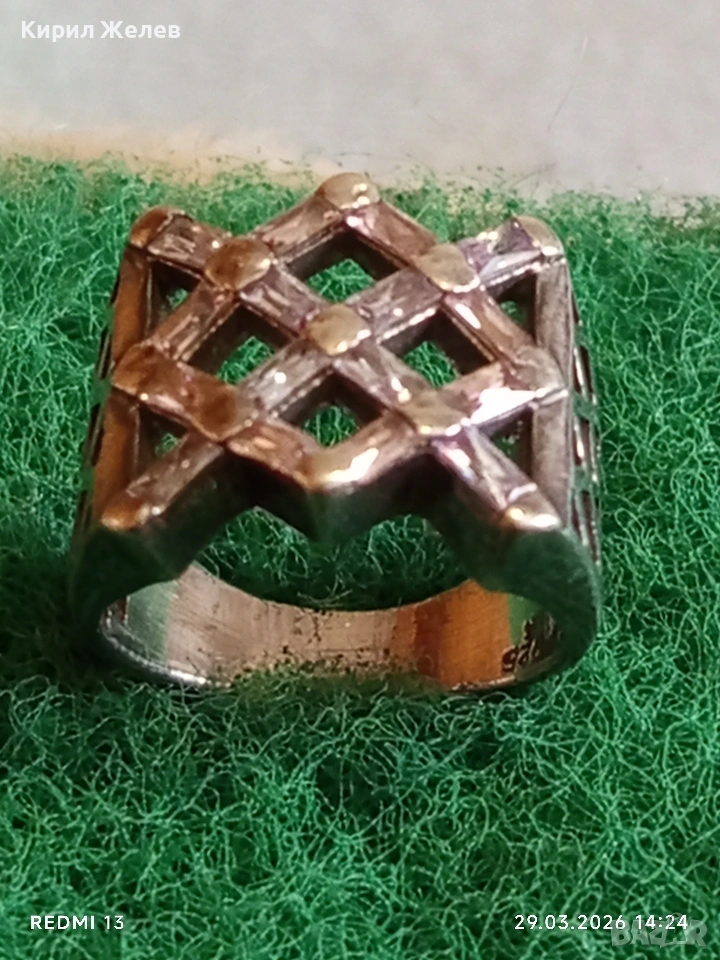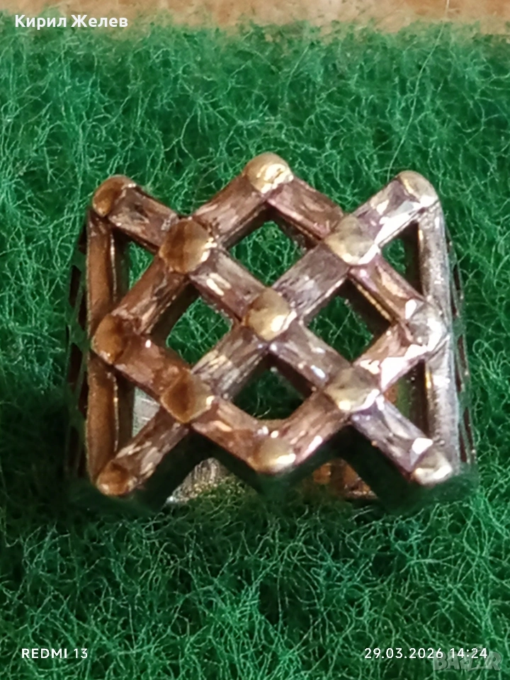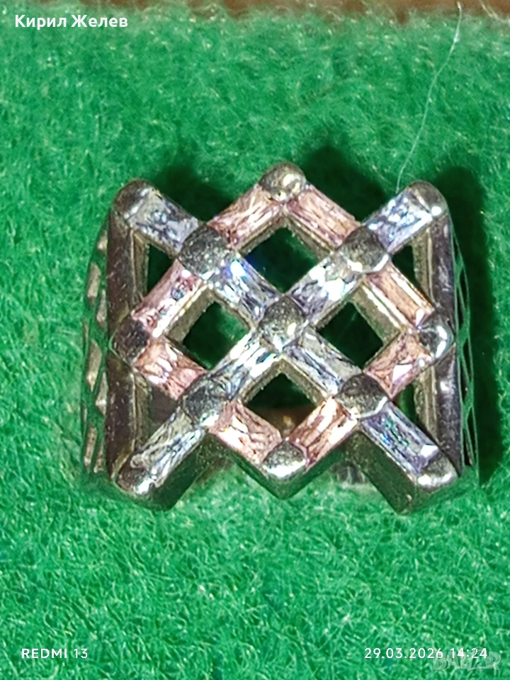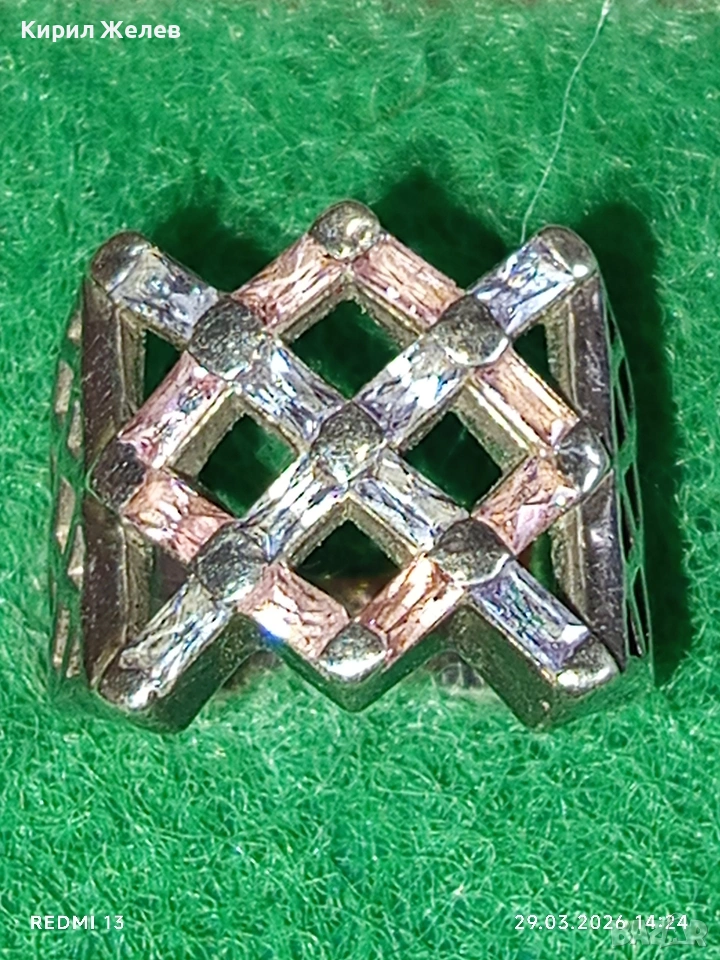 Шармантен Арт Деко сребърен пръстен с РОЗОВ КВАРЦ и БРИЛЯНТ 54212