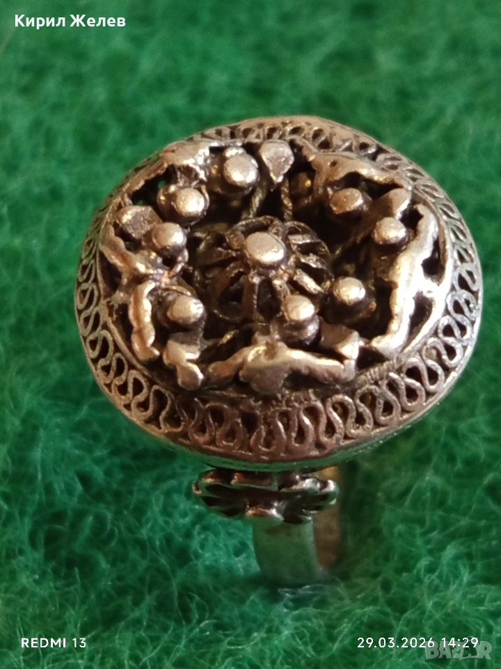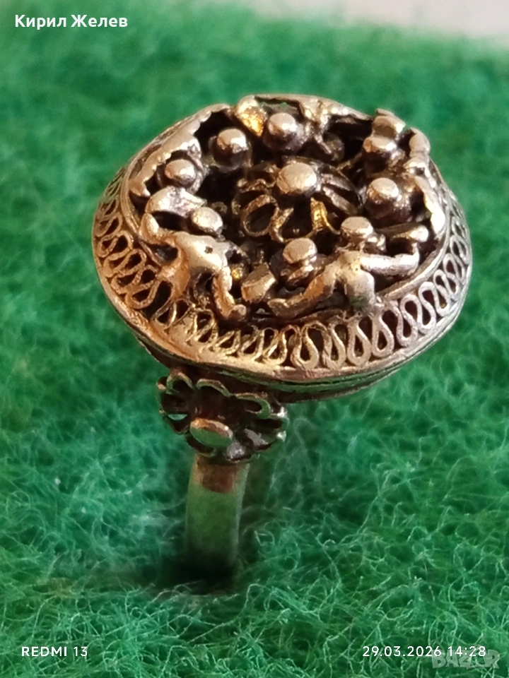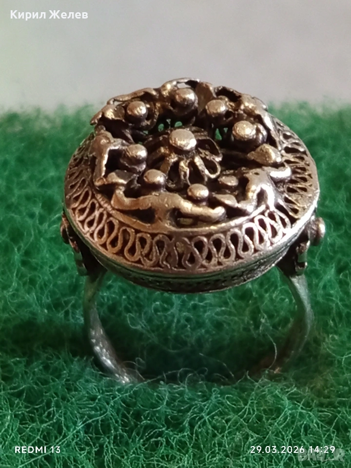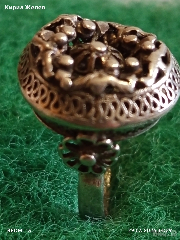 Възрожденски филигранен сребърен пръстен с гранулация ювелирна изработка 32375
