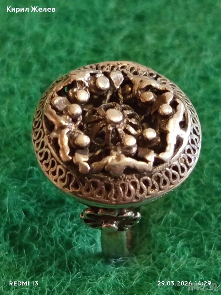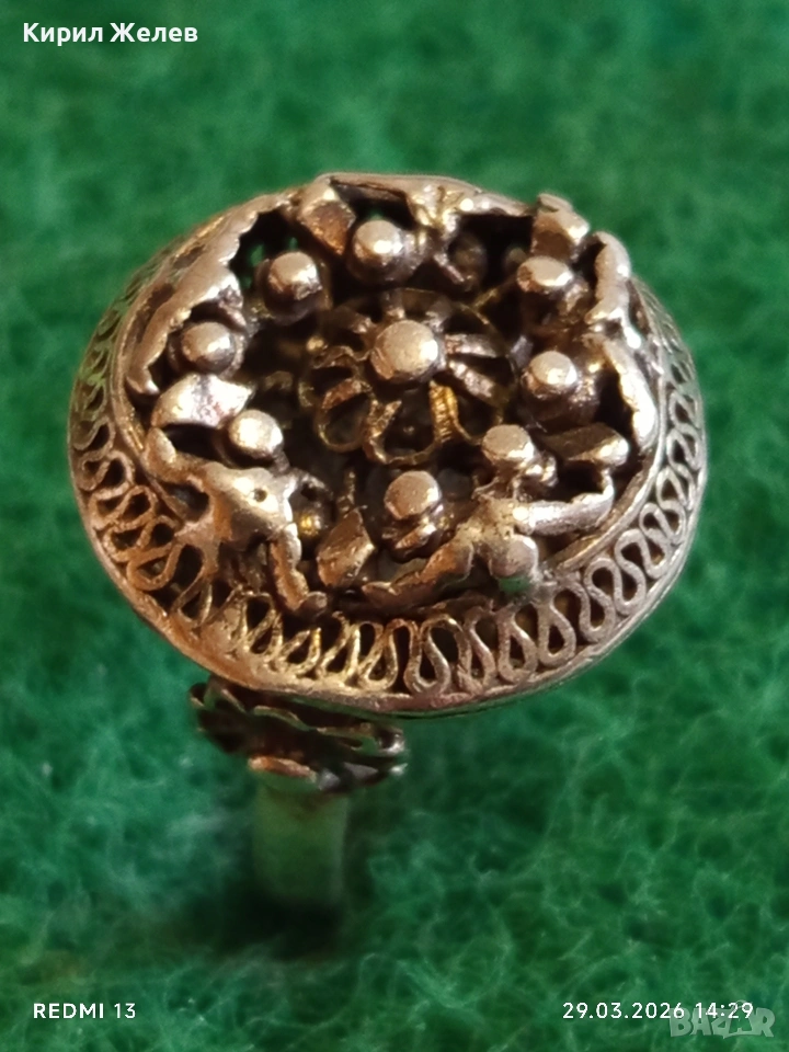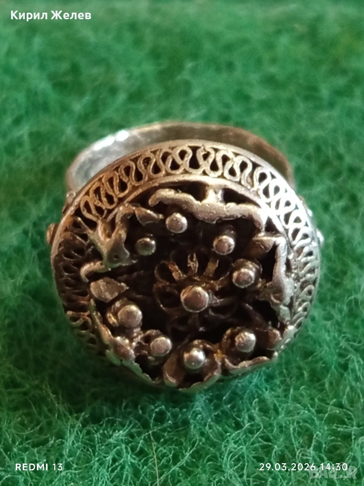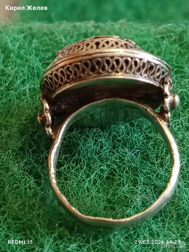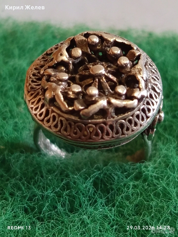 Възрожденски филигранен сребърен пръстен с гранулация ювелирна изработка 32375