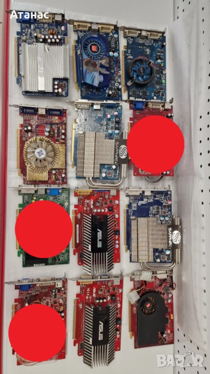 Продавам част от колекцията си работещи видеокарти. Както се вижда на снимката това са ретро модели. Всички са тествани и работещи . Някои от тях дори съм обслужвал. Продават се на бройка , както и комплект. С червено на първата снимка съм задраскал продадените.