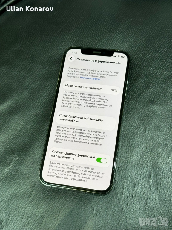 Телефонът е в много добро състояние. продава се с кабел за зареждане. Всичко по телефона е оригинално. Памет 256гб, батерия 87%