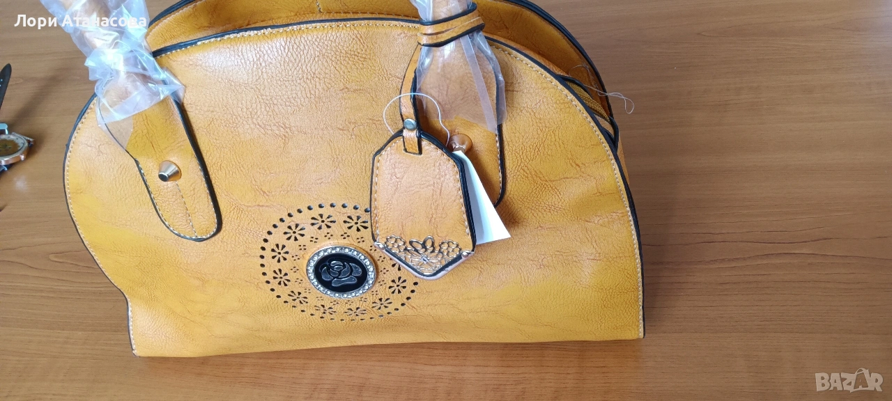 Чанта от висококачествена еко кожа в цвят горчица, с удължаваща се дръжка. → Обява 54015078