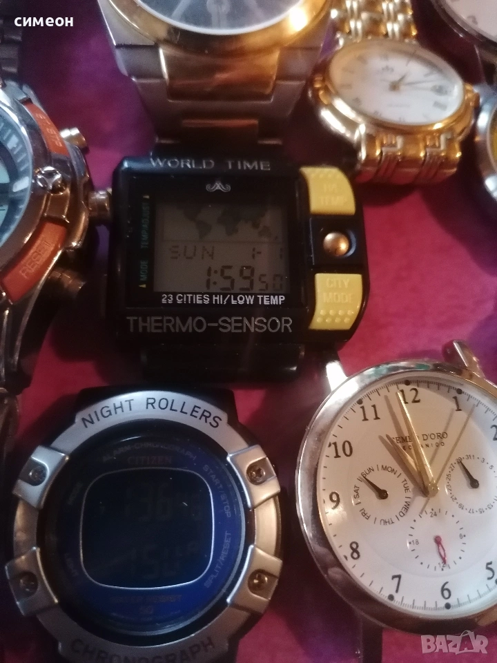 Часовниците работят. Някои са за батерия.Има 3 автоматични. Tempo de oro работи отлично. Ситизена и майстер анкер са редки. Цената е за всички, заедно с Кутията.