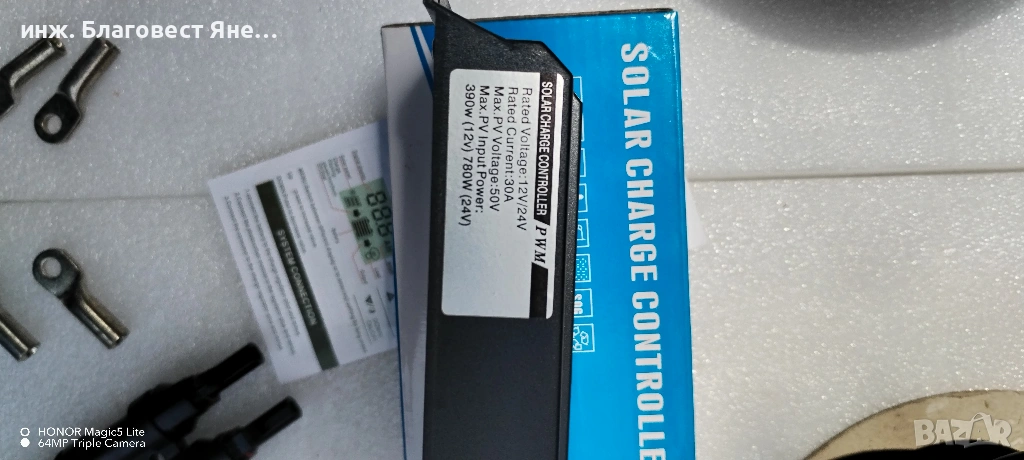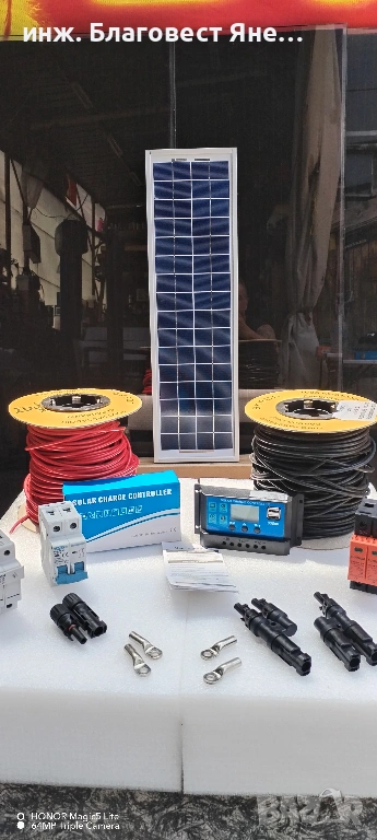 съдържа : ( нов компактен соларен панел -20 вата и соларен контролер