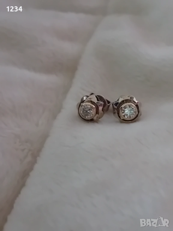Голяма красота на живо.Ръчно изработени от злато 14 к. 2,4 грама с естествени диаманти 0,64 к. общо.Бяло и жълто злато.Само лично предаване ,за да си ги проверите при бижутер.Моля да не ми пишетеза друга цена.