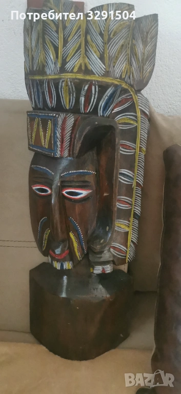 Продавам красива дървена маска, ръчно изработена и богато декорирана с цветни детайли. Подходяща е за домашен интериор, арт колекции, етно декор или подарък за ценители на ръчната изработка.