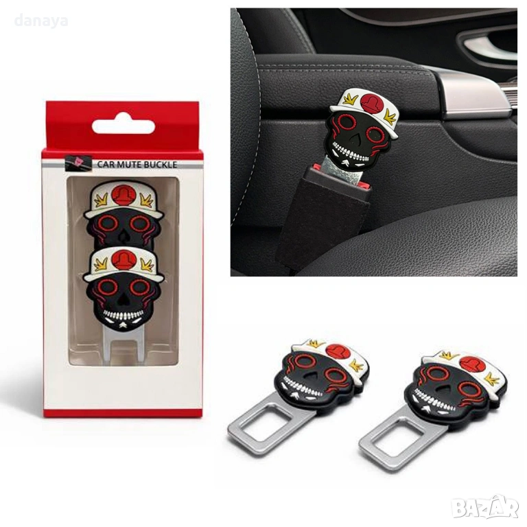 Залъгалка за колан с дизайн череп, адаптер за колан и стопер за сигнал, който премахва досадния звуков сигнал и придава стилен акцент в интериора на автомобила. Практично решение за ситуации, когато сензорът за колан се активира без причина – с този адаптер шофирането става по-спокойно и комфортно.