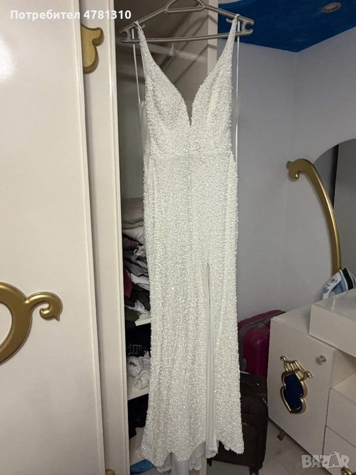Роклята е в отлично състояние обличана за 3 часа разделям се с нея защото няма къде да я облека → Обява 54015582