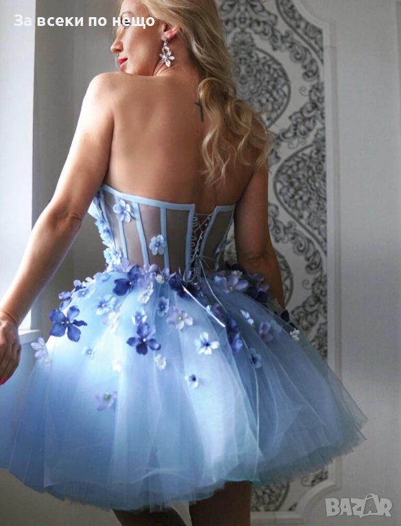 Нежна Тюлена Рокля С 3D Флорални Апликации В Небесносиньо Код Roni42 → Обява 54015714