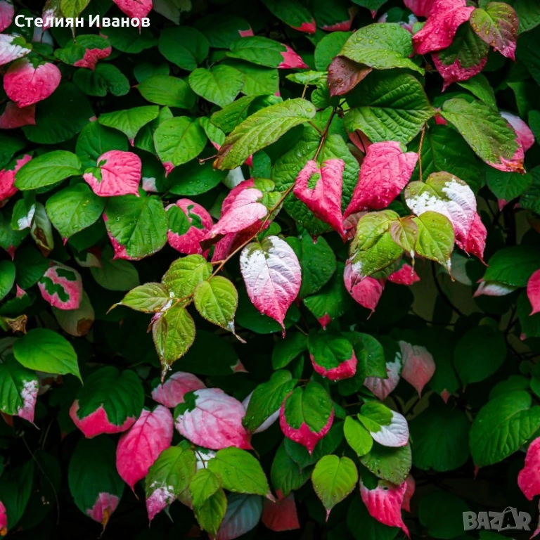 Вариегатно, самоопрашващо се, зелено голо киви (Actinidia arguta 'Dr. Szymanowski')