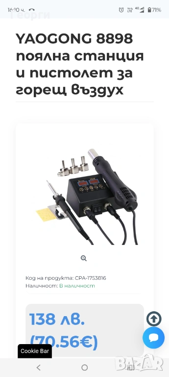 Станцията е закупена за 139лв (71€), изгубил съм касовата бележка, затова в предлагам на -50% от магазинната цена за 35€. Продуктът е съвсем чисто нов, включен веднъж в магазина за проба и веднъж тук в приложеният 🎬 клип под описанието: