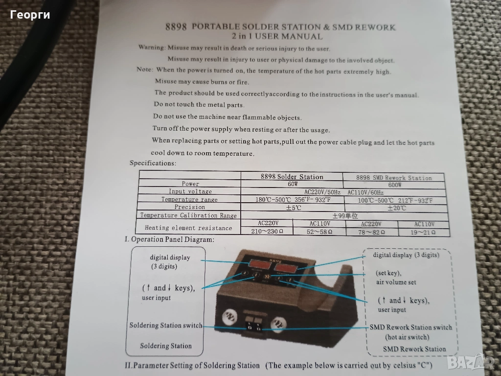 Предлагам чисто нова двойна поялна станция Yаоgong 8898 с независимо захранване на поялника и горещият въздух, както и галванична развръзка от мрежата, за безопасно запояване на чувствителна апаратура и компоненти.