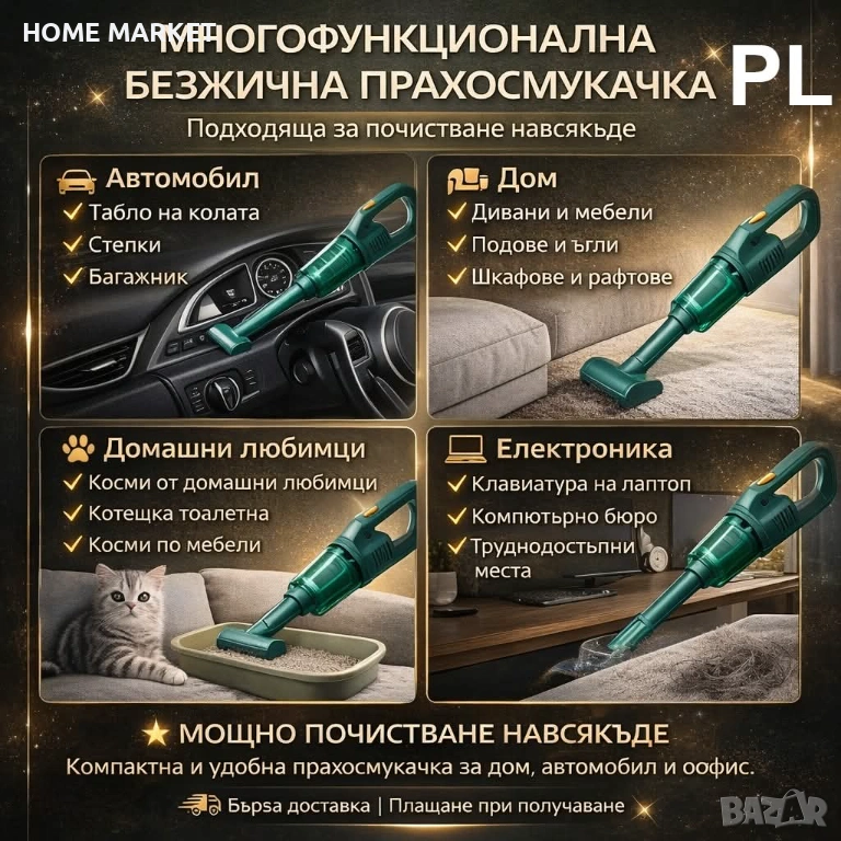 Безжична многофункционална прахосмукачка 2 в 1 – компактна прахосмукачка за дом и автомобил