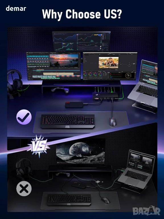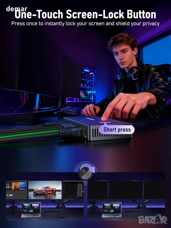 Тази докинг станция Thunderbolt 4 съчетава защита на поверителността с високопроизводителна свързаност, позволявайки на потребителите незабавно да деактивират външни дисплеи за сигурна работа в споделена среда. Тя поддържа два HDMI и един DisplayPort изходи с плавна 4K картина, заедно с истинска функционалност за три монитора за ефективна многозадачност. Оборудвана с множество портове, включително USB-A и RJ45, тя позволява безпроблемно свързване на основни устройства като принтери, скенери и външни дисплеи, което я прави подходяща за бизнес, домашна или развлекателна употреба. Включеният 1-метров USB-C кабел предлага гъвкави опции за настройка, а лекият и преносим дизайн осигурява лесно транспортиране за потребители, които често се местят между работните си места.