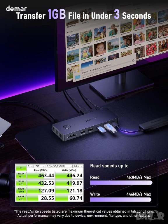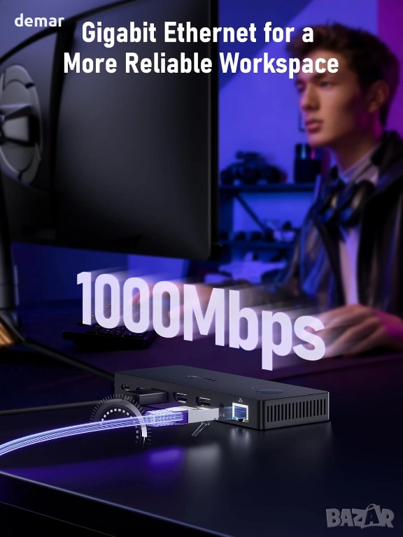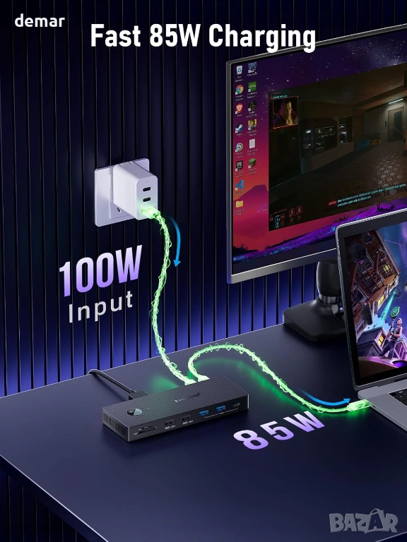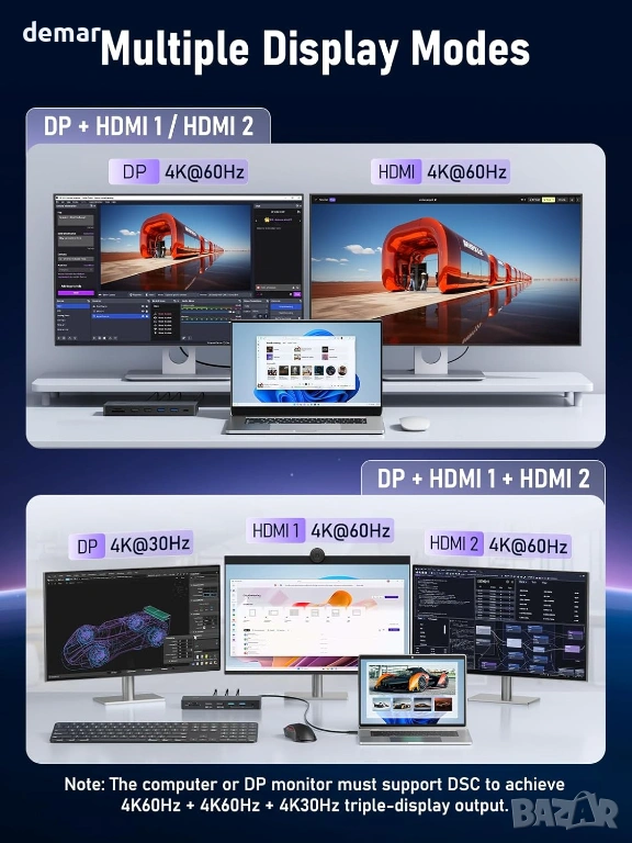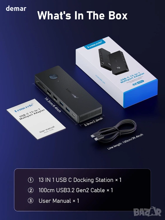 USB C докинг станция за три монитора, Lemorele 13 в 1, 2* 4K HDMI, DP