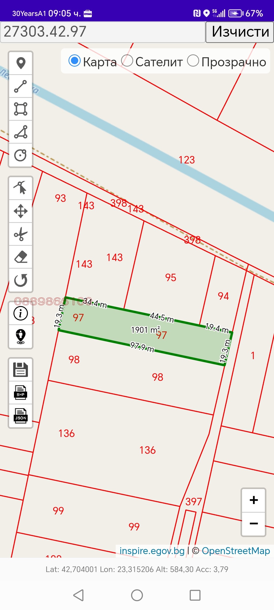 ✅ БЕЗ СЕРВИТУТИ: Разположен на безопасно разстояние (около 30 м) от напоителния канал. Целият парцел е използваем за строителство, без ограничения.