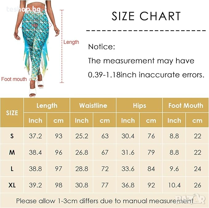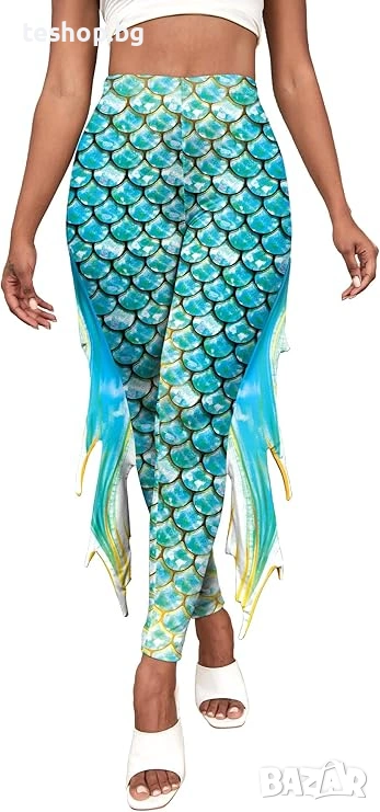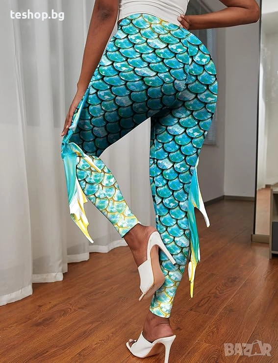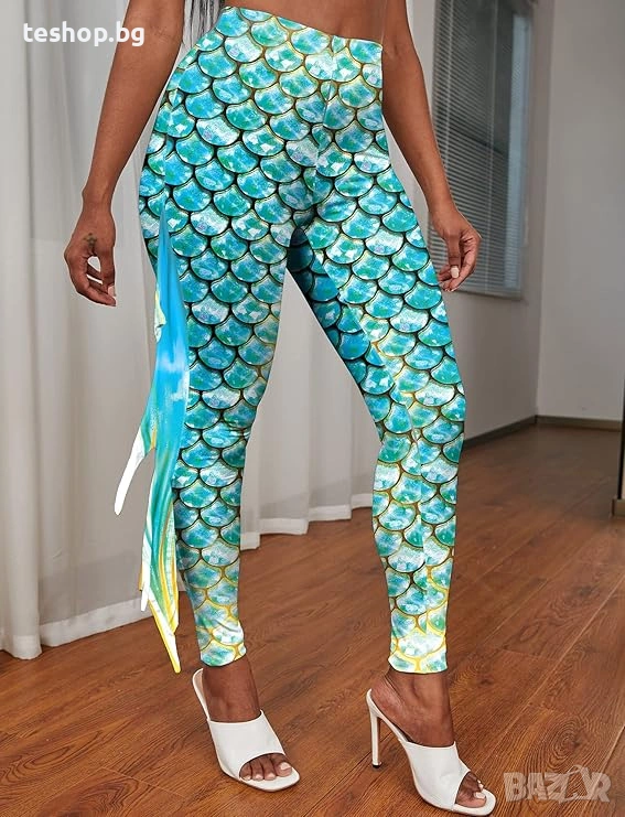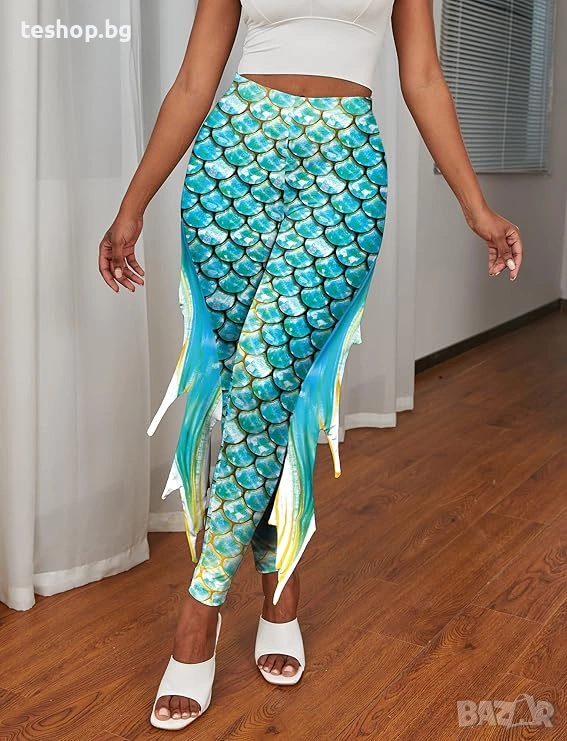 Характеристики: Висока талия, еластична материя, щампа с рибени люспи, подгъв с форма на перка.
