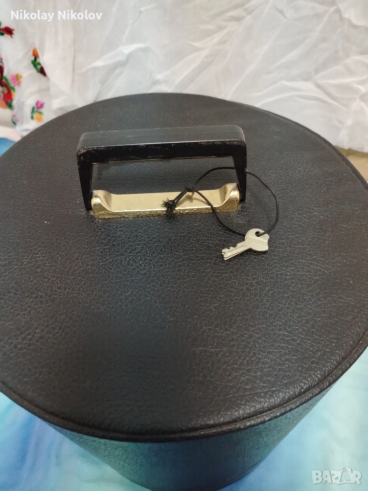 Кожен винтидж куфар за шапки с две закупчалки и ключе без абсолютно никакви забележки
